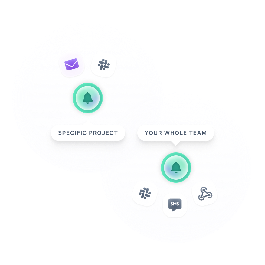 Have one project report to Slack’s #on-call channel, and another in your mailbox. Integrates with many tools, including Slack, email, Teams, SMS, webhooks, and more.